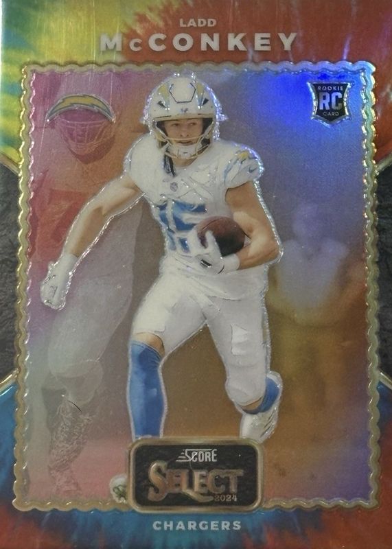 Auctions Ending Soon for Ladd McConkey 2024 Select #25 Score Select Throwback - Tie-Dye /25 Rookie RAW