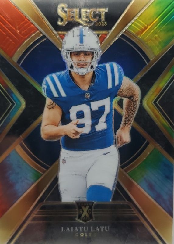 This card is 1 of 4 Laiatu Latu's card variations in the 2023 Select set being tracked by Sports Card Investor, including XRC Prizm, XRC Prizm - Gold /10, and XRC Prizm - Black /1.