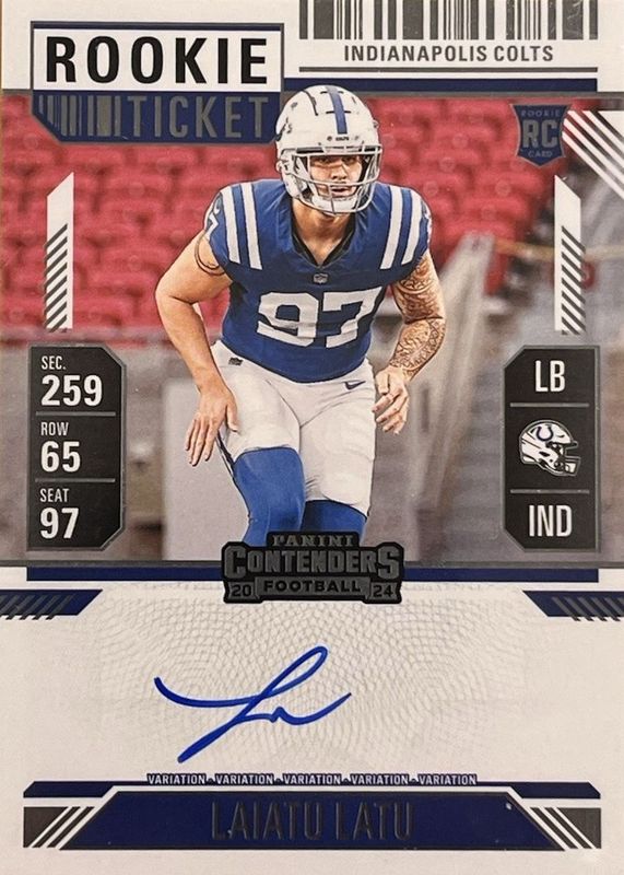 LAIATU LATU 2024 CONTENDERS ROOKIE TICKET VARIATION COLTS RC AUTO Q3549