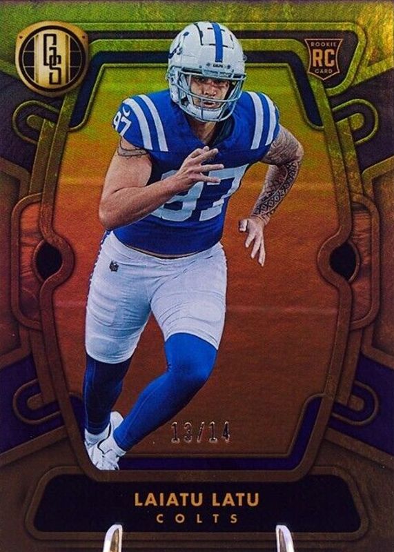 The Laiatu Latu 2024 Gold Standard #115 Violet /14 Rookie card in Raw condition has not changed in price in the last 30 days and was last sold for $5.04 .