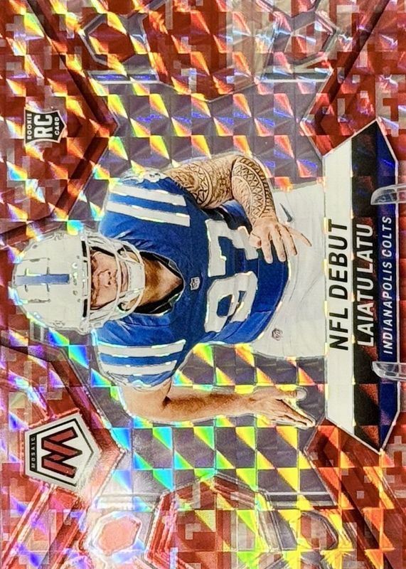 The Laiatu Latu 2024 Mosaic #290 NFL Debut - Pink Camo Rookie card in Raw condition has not changed in price in the last 30 days and was last sold for $0.99 .