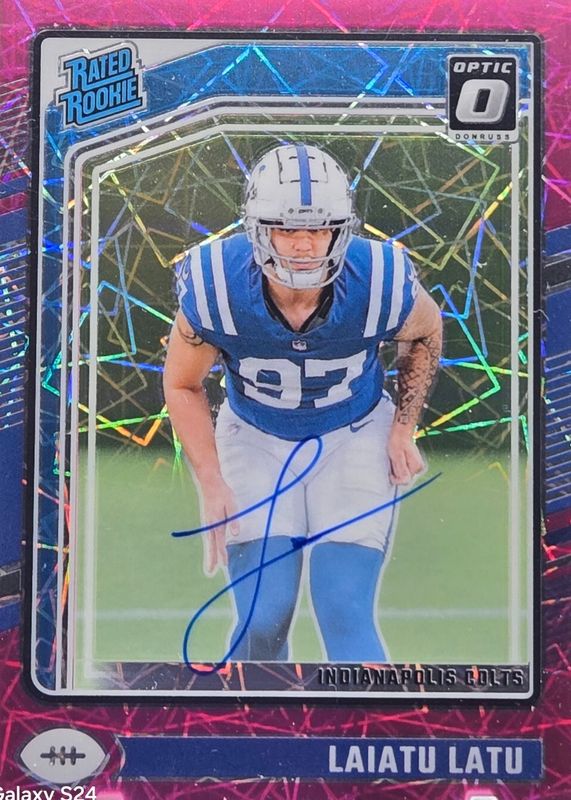 2024 Donruss Optic Laiatu Latu Rated Rookie Auto Pink Velocity /50 - Colts