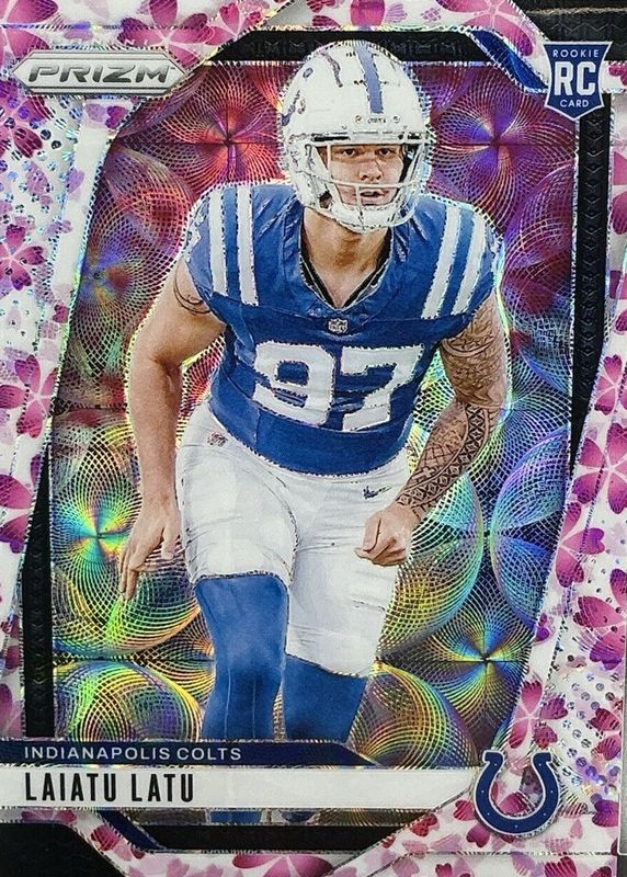 The Laiatu Latu 2024 Prizm #366 Choice Cherry Blossom /15 Rookie card in Raw condition has not changed in price in the last 30 days and was last sold for $90.00 .