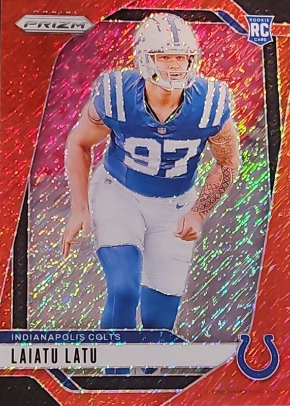 The Laiatu Latu 2024 Prizm #366 Red Shimmer /35 Rookie card in Raw condition has not changed in price in the last 30 days and was last sold for $27.01 .