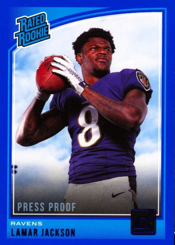 2018 Panini Donruss Lamar Jackson Blue Press Proof rookie card Baltimore Ravens