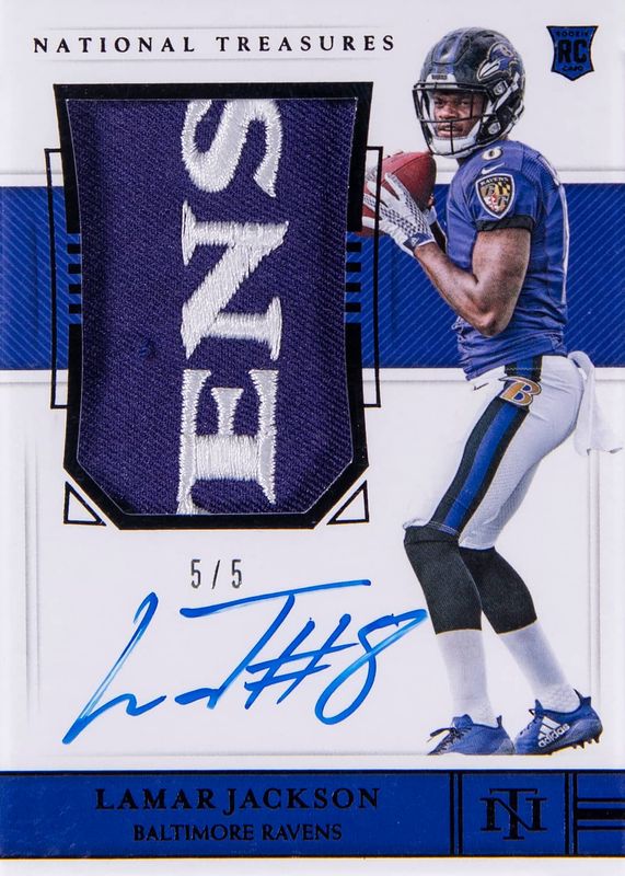 Recent Sales of Lamar Jackson 2018 National Treasures #165 Rookie Patch Auto - Black /5 PSA 6.5