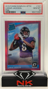 The Lamar Jackson 2018 Optic #167 Pink Rookie card in Raw condition has moved down -$8.00 (-6.8%) in the last 30 days and was last sold for $110.00 .