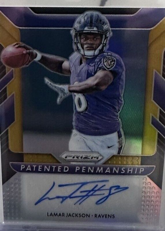 The Lamar Jackson 2018 Prizm #PPP-LJ Patented Penmanship - Gold (/10) Rookie card in Raw condition has not changed in price in the last 30 days and was last sold for $1,150.00 .