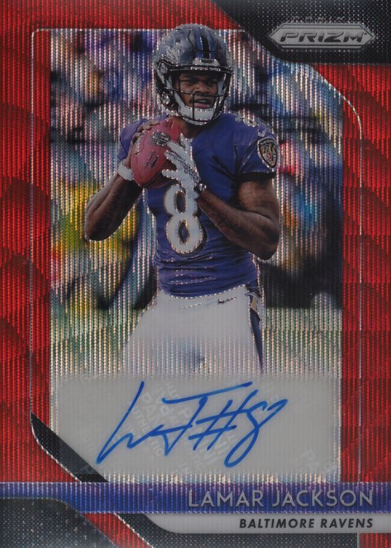 Best Prices Available For Sale of Lamar Jackson 2018 Prizm #RA-LJ Rookie Autographs - Red Wave (/25)