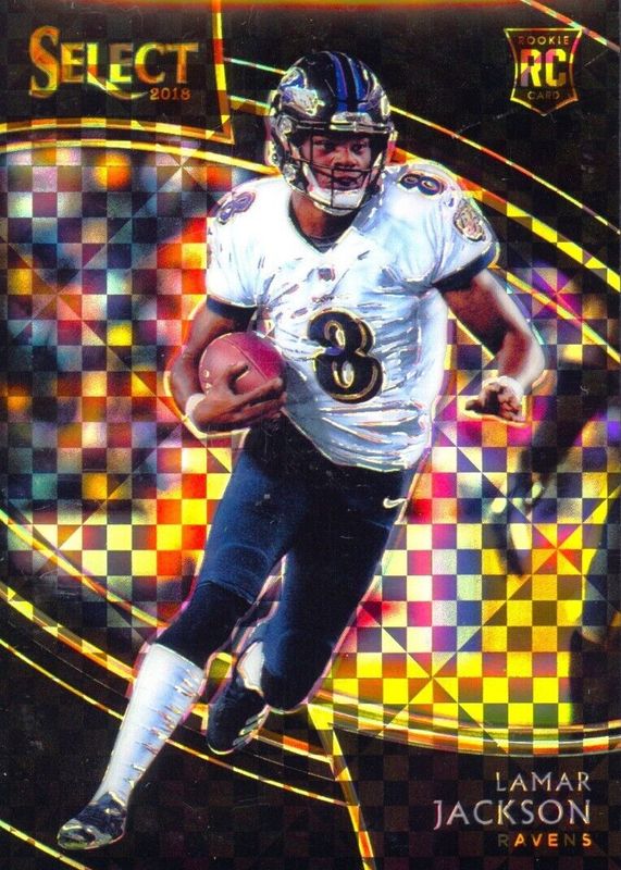 This card is 1 of 68 Lamar Jackson's card variations in the 2018 Select set being tracked by Sports Card Investor, including Concourse, Field Level, Premier Level, Concourse Silver, and Field Level Silver.