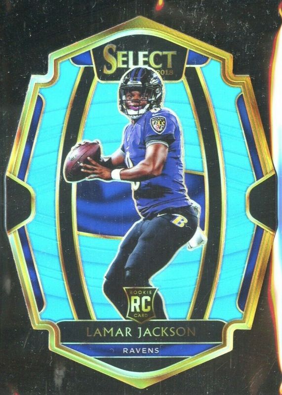 2018 Panini Select Lamar Jackson Premier Level Light Blue Holo Die Cut RC 29/99