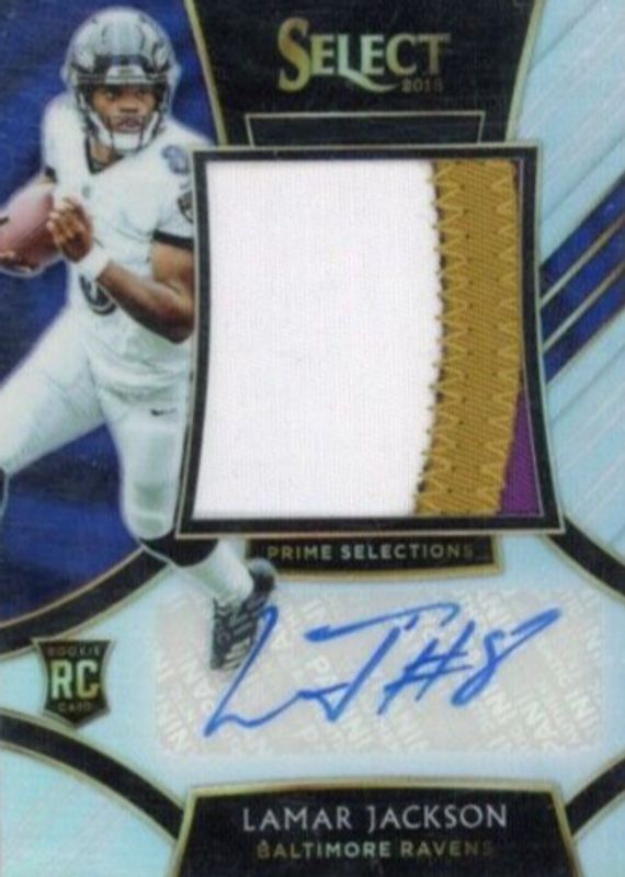 2018 Select Prime Selections Lamar Jackson ROOKIE RC 4-CLR PATCH AUTO /35 (PWCC)