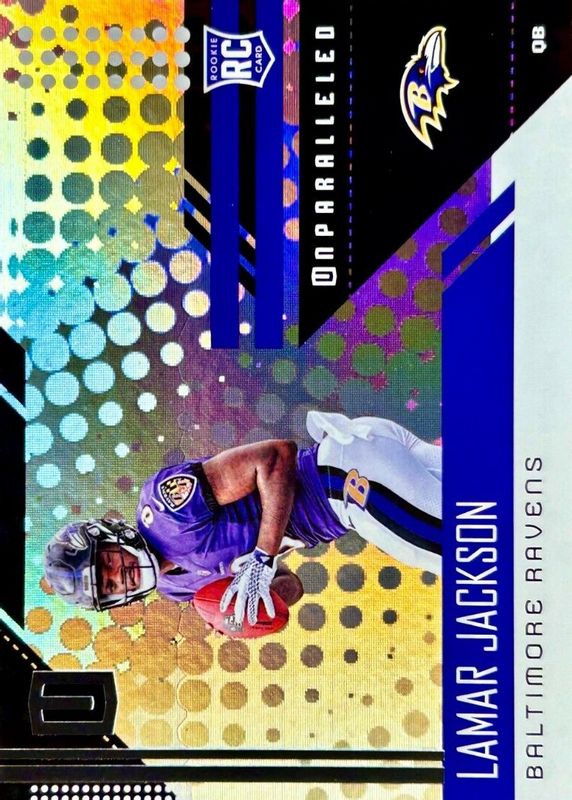 The Lamar Jackson 2018 Unparalleled #209 Base Rookie card in Raw condition has moved up $2.99 (+16.6%) in the last 30 days and was last sold for $20.99 .