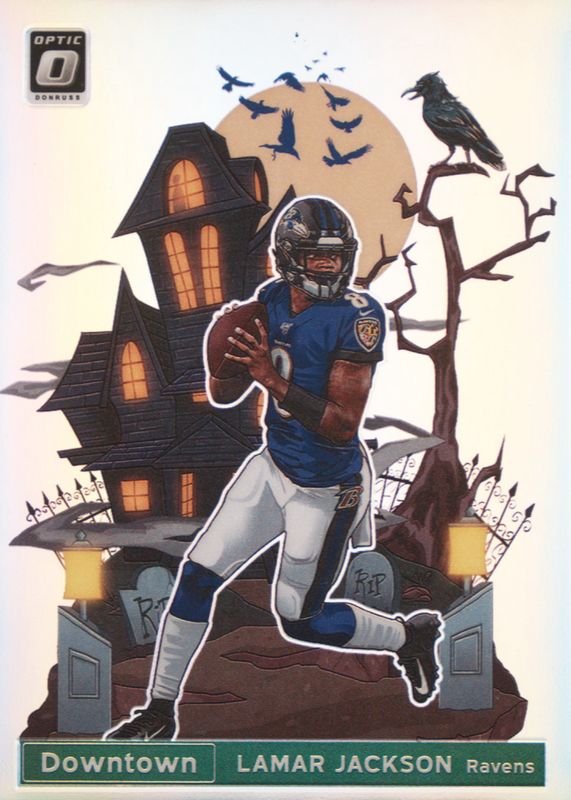 The Lamar Jackson 2020 Optic #DT-6 Downtown /(SSP) card in Raw condition has not changed in price in the last 30 days and was last sold for $590.00 .