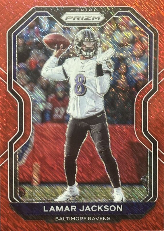 The Lamar Jackson 2020 Prizm #37 FOTL Red Shimmer /35 card in Raw condition has not changed in price in the last 30 days and was last sold for $45.00 .