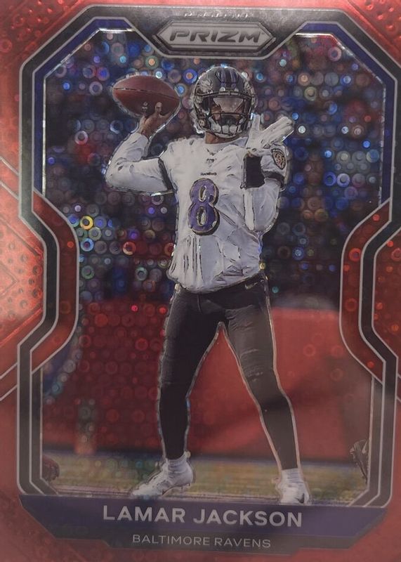 2020 Prizm Lamar Jackson Rare Red Disco No Huddle 42/50 Baltimore Ravens 37