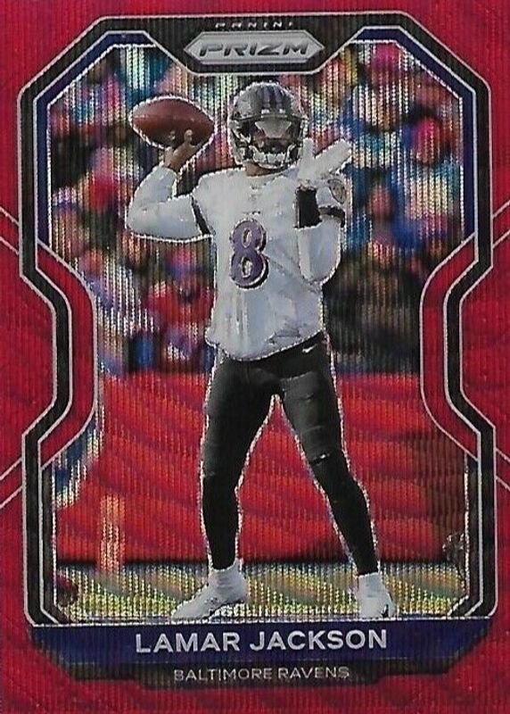 2020 Panini Prizm Lamar Jackson Red Wave Prizm #134/149 #37 Baltimore Ravens