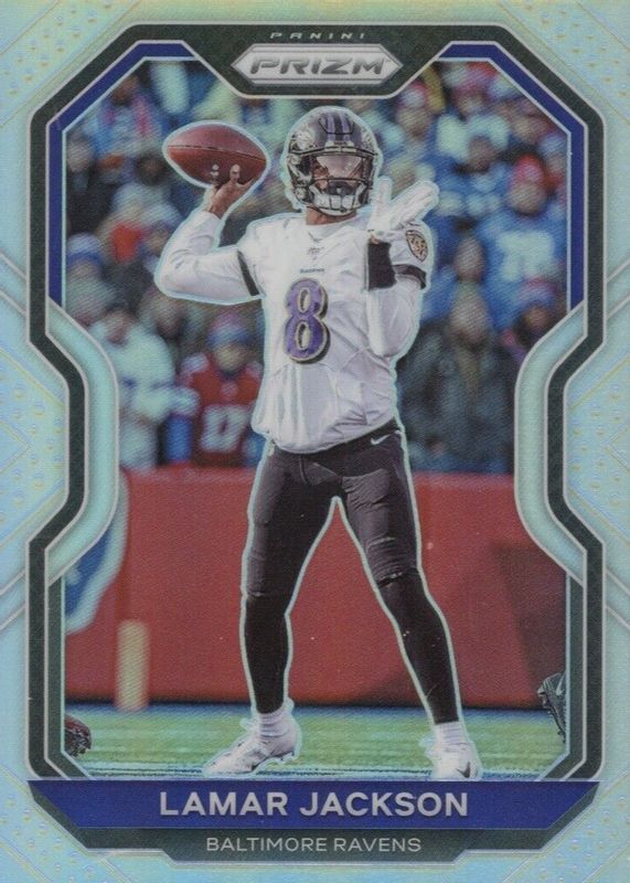 The Lamar Jackson 2020 Prizm #37 Silver card in Raw condition has moved down -$5.51 (-52.5%) in the last 30 days and was last sold for $4.99 .