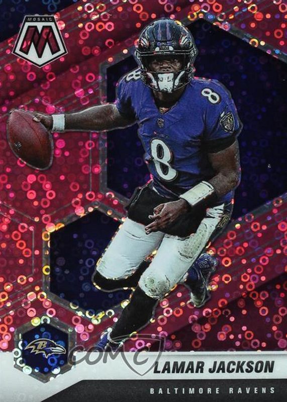 Best Prices Available For Sale of Lamar Jackson 2021 Mosaic #19 No Huddle Pink /20