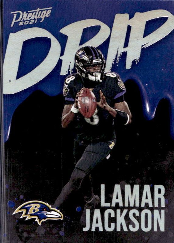 The Lamar Jackson 2021 Prestige #ND-LJ NFL Drip /(SSP) card in Raw condition has not changed in price in the last 30 days and was last sold for $27.00 .