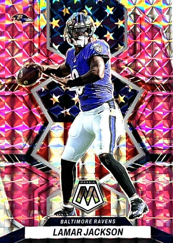 Best Prices Available For Sale of Lamar Jackson 2022 Mosaic #259 National Pride - Pink Camo