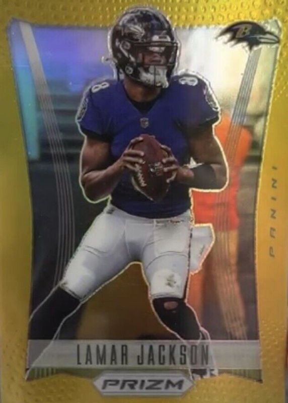 The Lamar Jackson 2022 Prizm #PF-6 Prizm Flashback - Gold /10 card in Raw condition has not changed in price in the last 30 days and was last sold for $1,200.00 .