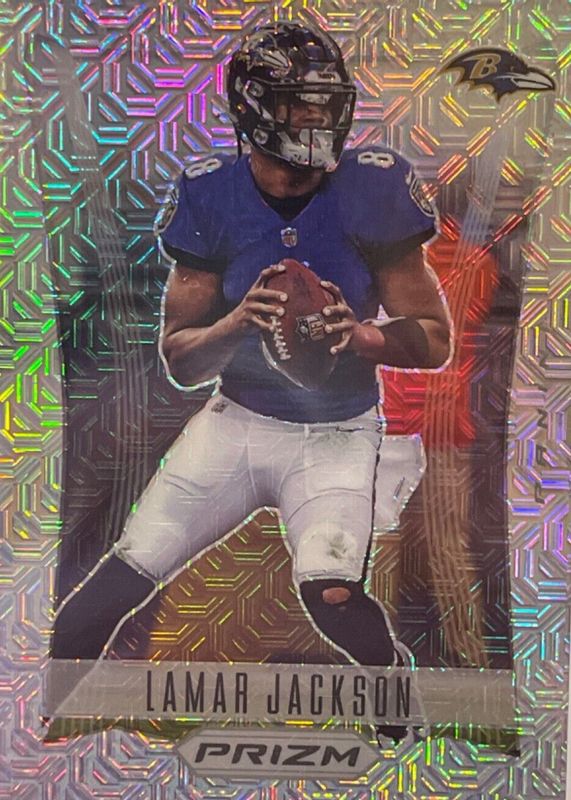 The Lamar Jackson 2022 Prizm #PF-6 Prizm Flashback - Mojo /25 card in Raw condition has not changed in price in the last 30 days and was last sold for $49.00 .