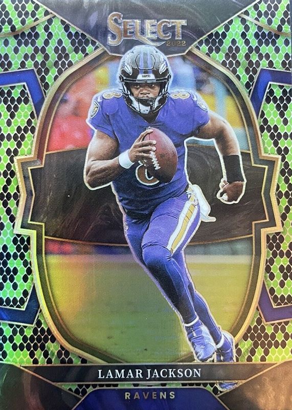 Lamar Jackson 2022 Select #73 Concourse Green & Black Snakeskin /2 RAW Price Guide