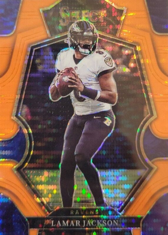 Lamar Jackson 2022 Select #107 Premier Level Neon Orange Pulsar /7 RAW Price Guide