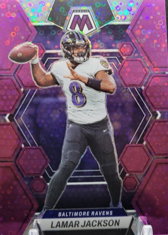 2023 Mosaic Lamar Jackson Purple Prizm Disco 48/50 Color Match Ravens #13