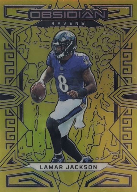 Lamar Jackson 2023 Obsidian #7 Electric Etch Gold Flood /10 RAW Price Guide
