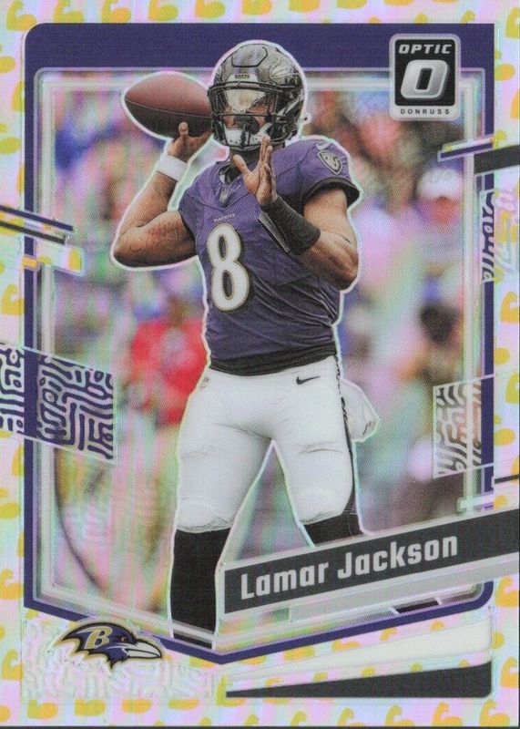 LAMAR JACKSON 2023 PANINI DONRUSS OPTIC #14 FLEX EMOJI PRIZM 110/149 RAVENS