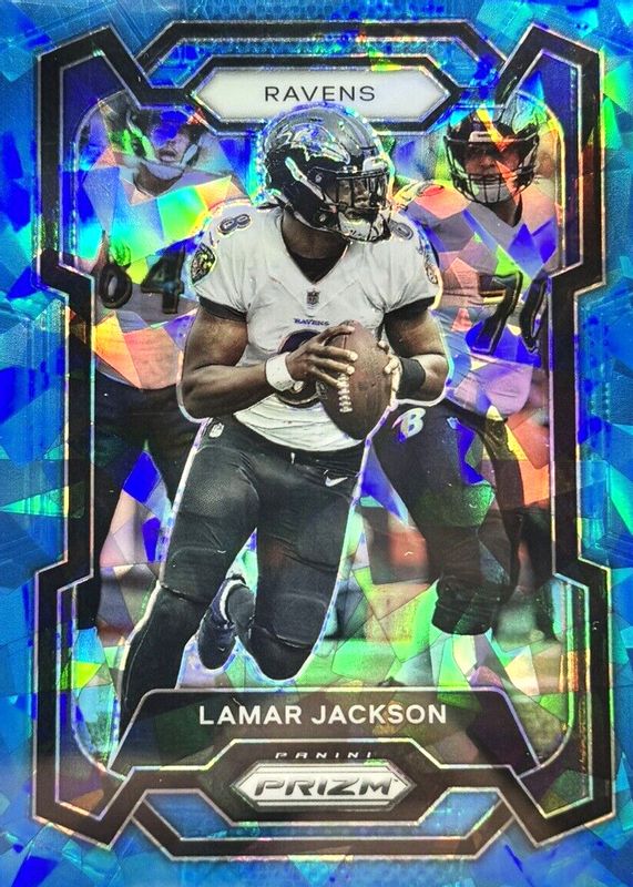 2023 Panini Prizm - Lamar Jackson #18 Blue Cracked Ice /99