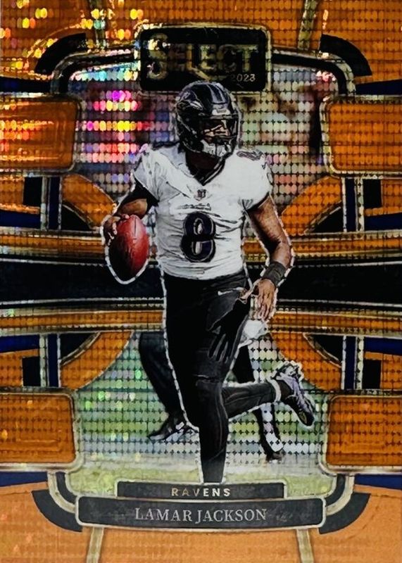 Lamar Jackson 2023 Select #7 Concourse Neon Orange Pulsar /7 RAW Price Guide