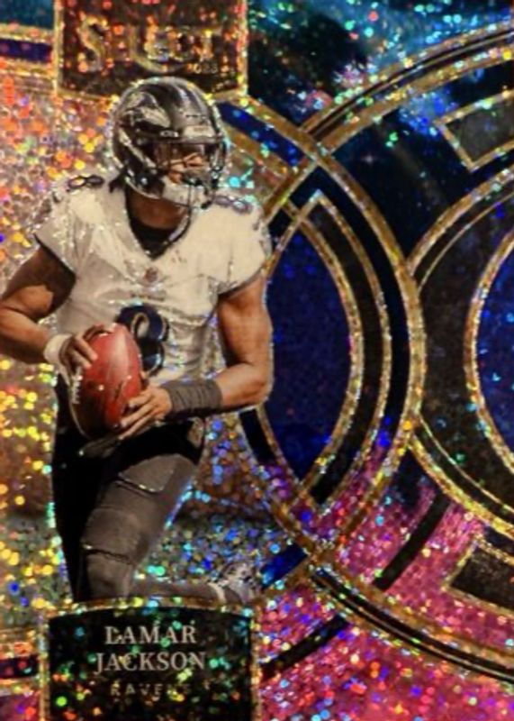 LAMAR JACKSON 2023 SELECT PREMIER LEVEL COSMIC PRIZM SSP RAVENS Q3562