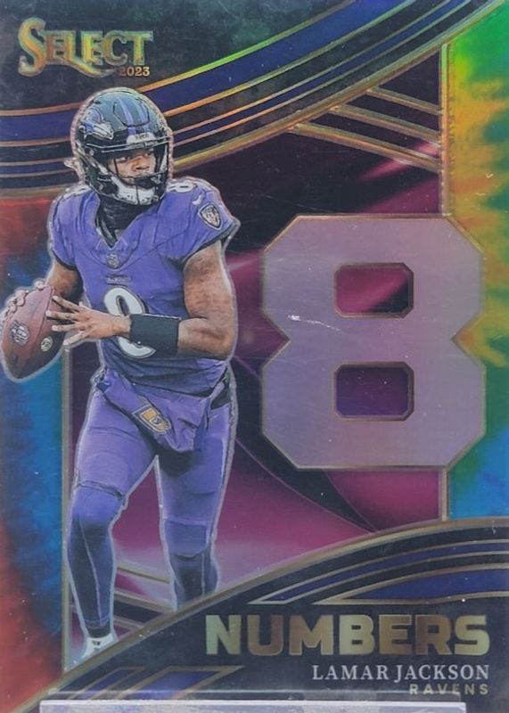 Lamar Jackson 2023 Select #NMB-LJA Select Numbers - Tie-Dye /25 RAW Price Guide