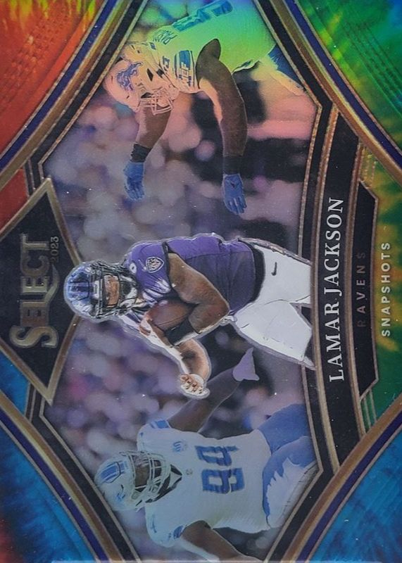 Lamar Jackson 2023 Select #SS-LJ Snapshots - Tie-Dye /25 RAW Price Guide