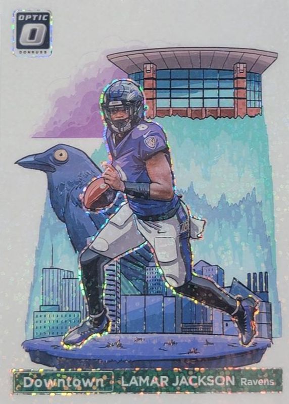 Lamar Jackson 2024 Optic #1 Downtown - White Sparkle /1 RAW Price Guide