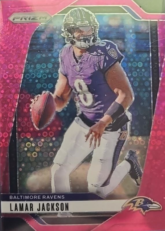 LAMAR JACKSON 2024 PANINI PRIZM PINK NO HUDDLE RAVENS #19 /25 Q3312