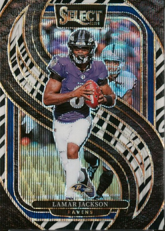 Best Prices Available For Sale of Lamar Jackson 2024 Select #121 Premier Level Zebra /(SSP)