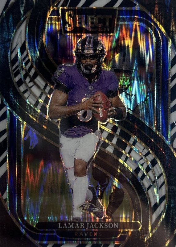 Best Prices Available For Sale of Lamar Jackson 2024 Select #121 Premier Level Zebra Shock /(SSP)