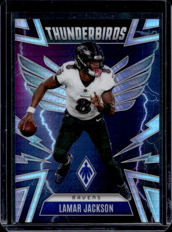 The Lamar Jackson 2025 Phoenix #4 Thunderbirds - Silver Hyper /299 card is 1 of 118 Lamar Jackson's card variations in the 2025 Phoenix set being tracked by Sports Card Investor, including Base, Silver, Silver Hyper, Silver Lava, and Silver Lazer.
