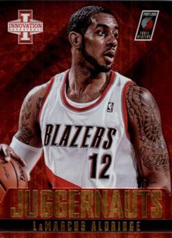 The LaMarcus Aldridge 2013 Innovation #23 Juggernauts card is 1 of 19 LaMarcus Aldridge's card variations in the 2013 Innovation set being tracked by Sports Card Investor, including Rookie View - Purple, Top Notch Autographs /325, Memorable Memorabilia /299, Rookie View /199, and Stat Line Jerseys /125.
