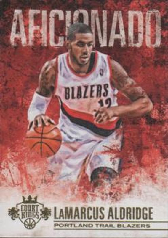 The LaMarcus Aldridge 2014 Court Kings #11 Aficionado card is 1 of 14 LaMarcus Aldridge's card variations in the 2014 Court Kings set being tracked by Sports Card Investor, including Base /149, Sapphire /25, Platinum /1, 5x7 Box Toppers Autographs, and Portraits /149.