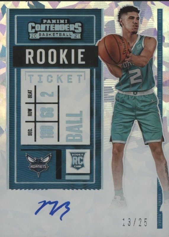 LaMelo Ball 2020 Contenders #125 Rookie Ticket Auto Variation - Cracked Ice Ticket /25 (Green Jersey) RAW Price Guide