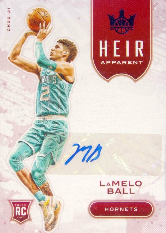 The LaMelo Ball 2020 Court Kings #HA-LMB Heir Apparent Autographs - Sapphire /25 Rookie card in Raw condition has not changed in price in the last 30 days and was last sold for $226.25 .