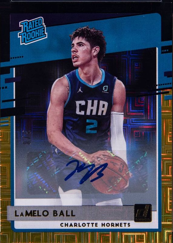 Auctions Ending Soon for LaMelo Ball 2020 Donruss #202 Rated Rookie Signatures - Choice Black Gold /8 RAW