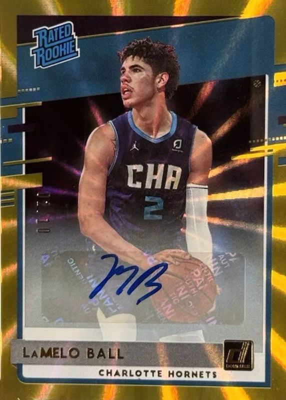 Auctions Ending Soon for LaMelo Ball 2020 Donruss #202 Rated Rookie Signatures - Holo Gold Laser /10 RAW