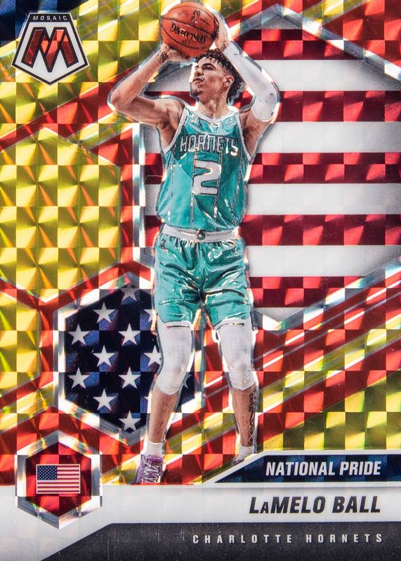 2020-21 Mosaic Basketball LaMelo Ball Red And Yellow Mosaic National Pride 12/88
