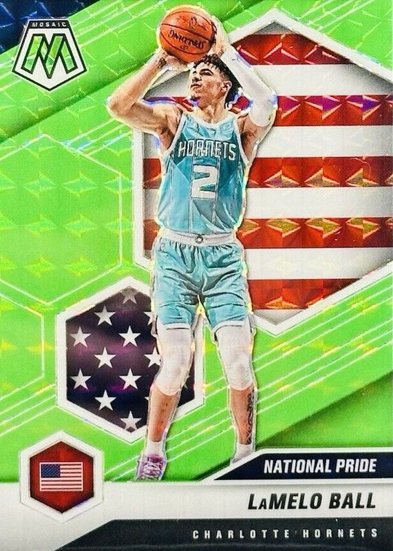 LaMelo Ball 2020 Mosaic #257 National Pride - Green Fluorescent /10 Rookie RAW Price Guide